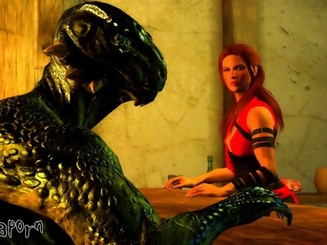 Lizardman gets milked by Sexy Red Head MILF in Bar "SKYRIM"