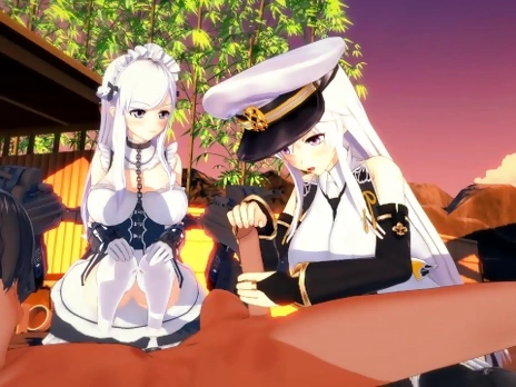 Azur Lane threesome - Belfast x Enterprise - 3D Hentai