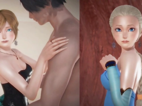 (3D Porn)(3D Hentai)(Frozen) Sex with girls dressed as Anna an Elsa